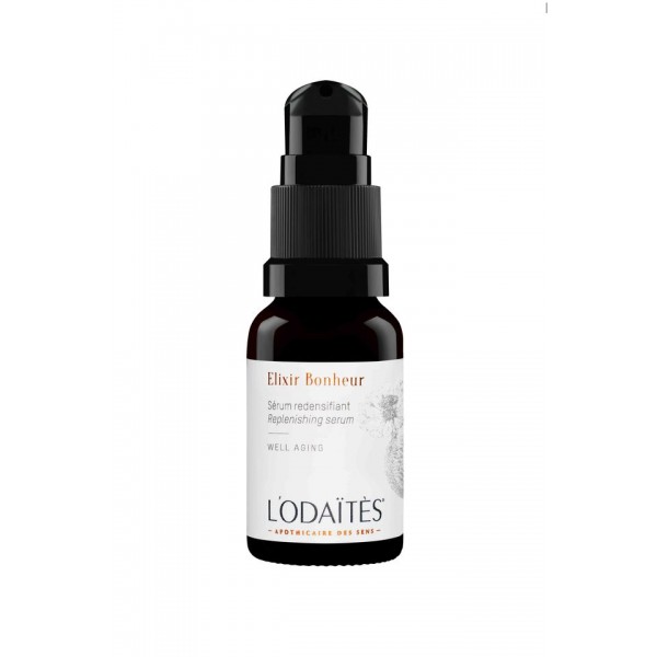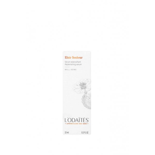 L’Elixir Bonheur de L’ODAÏTÈS agit contre le vieillissement cellulaire, réduit visiblement les rides, rétablit la fermeté de la peau et redensifie en sous cutané.