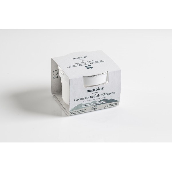 Appliquer matin et soir la Crème Riche Éclat Oxygène sur une peau propre et après avoir apposé le Sérum Parfait Sainbioz.